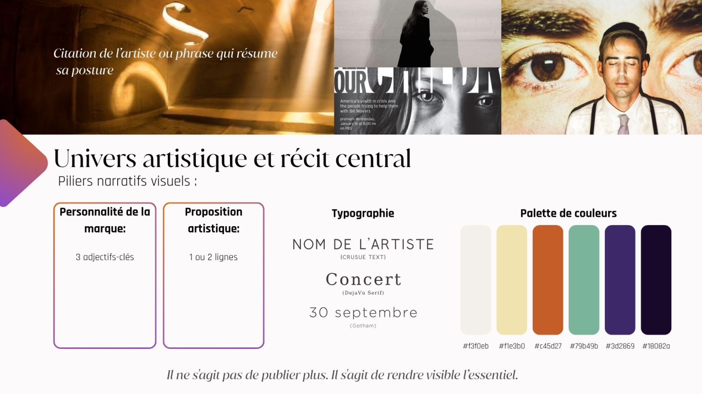 - Échange stratégique : analyse de votre identité artistique et définition de vos objectifs digitaux.